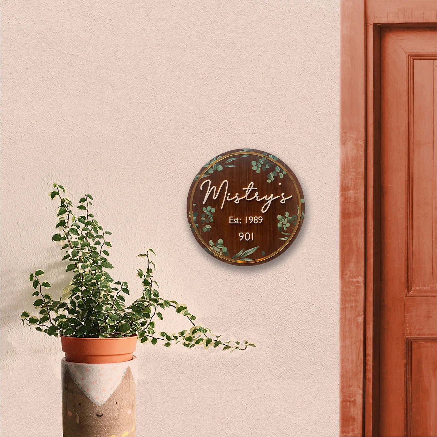 • With an easy-to-hang metal hook, this custom nameplate is a charming addition to your entrance area.